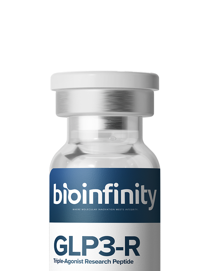 GLP3-R is a triple-agonist peptide targeting GLP-1, GIP, and glucagon receptors simultaneously. This tri-agonist approach is being researched as the next frontier in metabolic peptide science, leveraging three complementary pathways for maximal metabolic modulation.